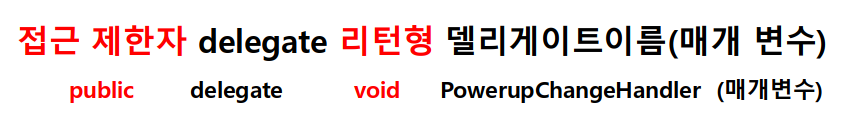 4. PowerupChangeHandler : 델리게이트 형식의 이름을 나타낸다.
