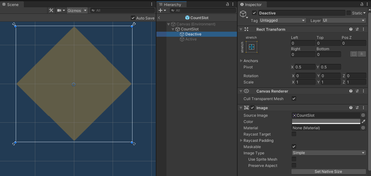프로젝트에서 사용할 CountSlot이라는 프리팹을 생성 후 인스펙터에서 사용할 목적에 맞게