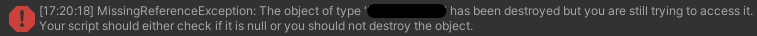 [유니티 에러]MissingReferenceException: The object of type '-' has been destroyed but you are still trying to access it. 본문