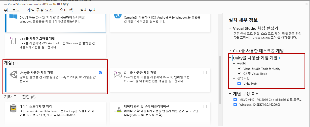 만약 여기서 그림에서 표시한 부분이 설치가 안되어 있으면 이 부분을 추가 설치하면 되고,