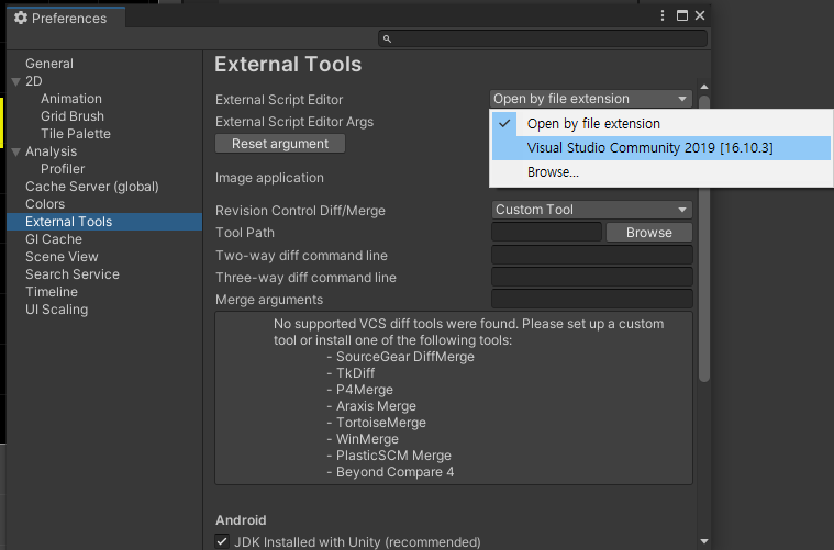 🔶 Plan B) Unity Editor 에서 Edit-Preferences-External Tools